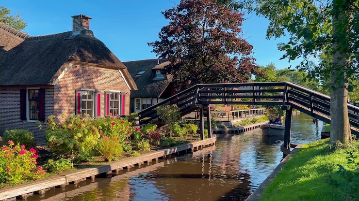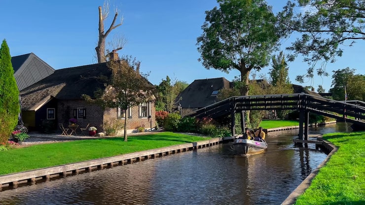 From the moment you arrive, Giethoorn captivates with its timeless charm: picturesque canals lined with graceful willow trees, centuries-old thatched-roof cottages, and quaint wooden bridges arching over tranquil waters. It is a place where nature whispers, beauty surrounds you from every angle, and the rush of everyday life feels worlds away.